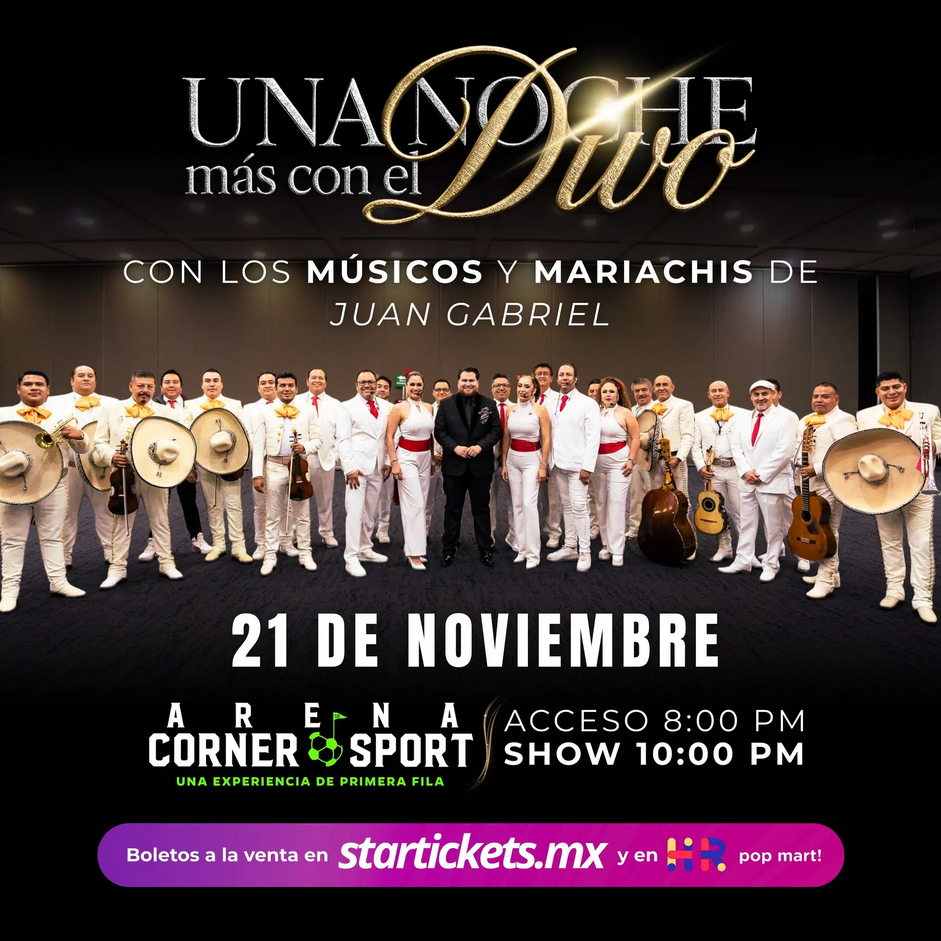 Este viernes 21 de noviembre a las 10:00 PM, la Arena Corner Sport recibe “Una Noche Más con el Divo – Angel Socarro”, ahora acompañado por la orquesta, parte del mariachi y coros que acompañaron al Divo de Juárez por años.