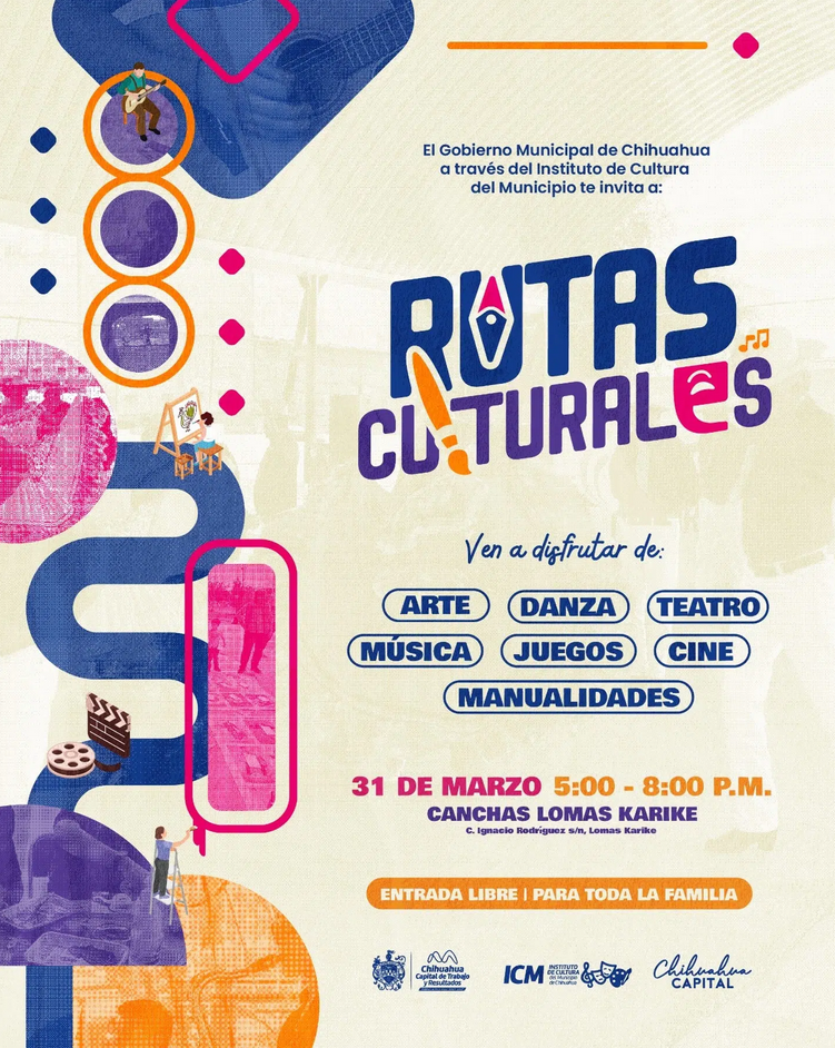 Disfruta de una tarde llena de arte y actividades para toda la familia con Rutas Culturales, un programa que lleva música, teatro, danza, juegos, cine y actividades artísticas a distintos puntos de #ChihuahuaCapital.
